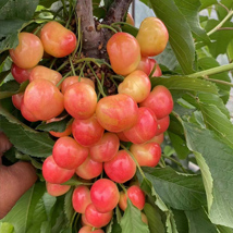 樹姿半開張,萌芽力、成枝力強易成花,豐產(chǎn);果實心臟形,黃底紅暈,果皮光亮,果柄中長,平均單果重13克;